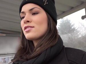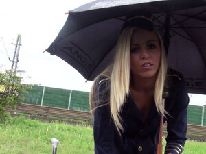 Европска риба са наочарима изјебана у јавном пов-у. Секси европска бринета аматерка Ана Роуз прима кеш у јавности и показује сисе за странца, а затим у тихом степеништу добија свој велики курац у пички из перспективе