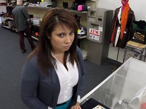 Сисата жена продаје мужу ствари и јебе се жестоко у залагаоници, сисата жена иде у залагаоницу да прода мужевљеве ствари, али на крају продаје своју пичку да извуче мужа из затвора