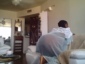 Згодна црна мама са великим сисама Мери Џин у правом видеу пушења у хотелској соби