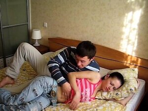 Мршава слаткица избушена од стране напаљеног очуха у спаваћој соби. Мршава бринета слаткица Катја пушта свог напаљеног очуха да јој лиже и јебе пичку прстима, а онда му откопчава панталоне да почне да му сиса дебели курац, а затим ужива у томе што јој је