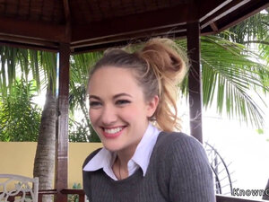 Невина слатка бринета Дафне се опушта док јој странац изненада прилази и пита нешто