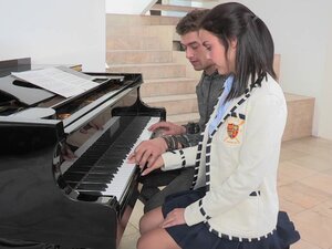 Студент са великим дупетом једе сперму након брзог јебања-Аматери. Студент са великим дупетом у краткој хаљини и чарапама омогућава вам да се брзо јебете стојећи, па чак и прогутате сперму након брзог секса!