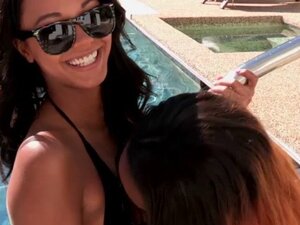 Луда порнићарка у фантастичном групном сексу, пушење секс сцена, Пет секси дама са великим сисама, јебе се са једним срећним, обдареним типом у базену, сви добијају прилику да му пуше велики курац као и да пробају међусобно слатке обријане пичке док