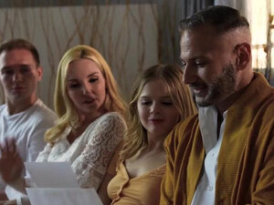 Робови јебу у оргији БДСМ журци. Вруће курве Јае Суммерс и Сиднеј Цоле под покорношћу господарице великих сиса Аиден Старр пуши велики курац и добија фацијал, а затим јебе на БДСМ оргији на горњем спрату