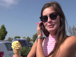 Сисата плавуша се јебе у ауту у јавности, сисата плавуша покупи странца након што се посвађала са дечком на улици, а онда га јебе и пуши му, а његов огромни курац даје у јавности